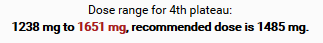 Note: Because the dosage calculator doesn't account for body weight, the predicted plateau will vary from what is calculated by weight range.